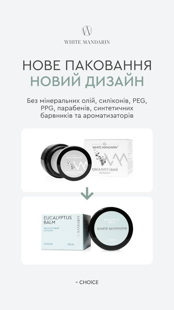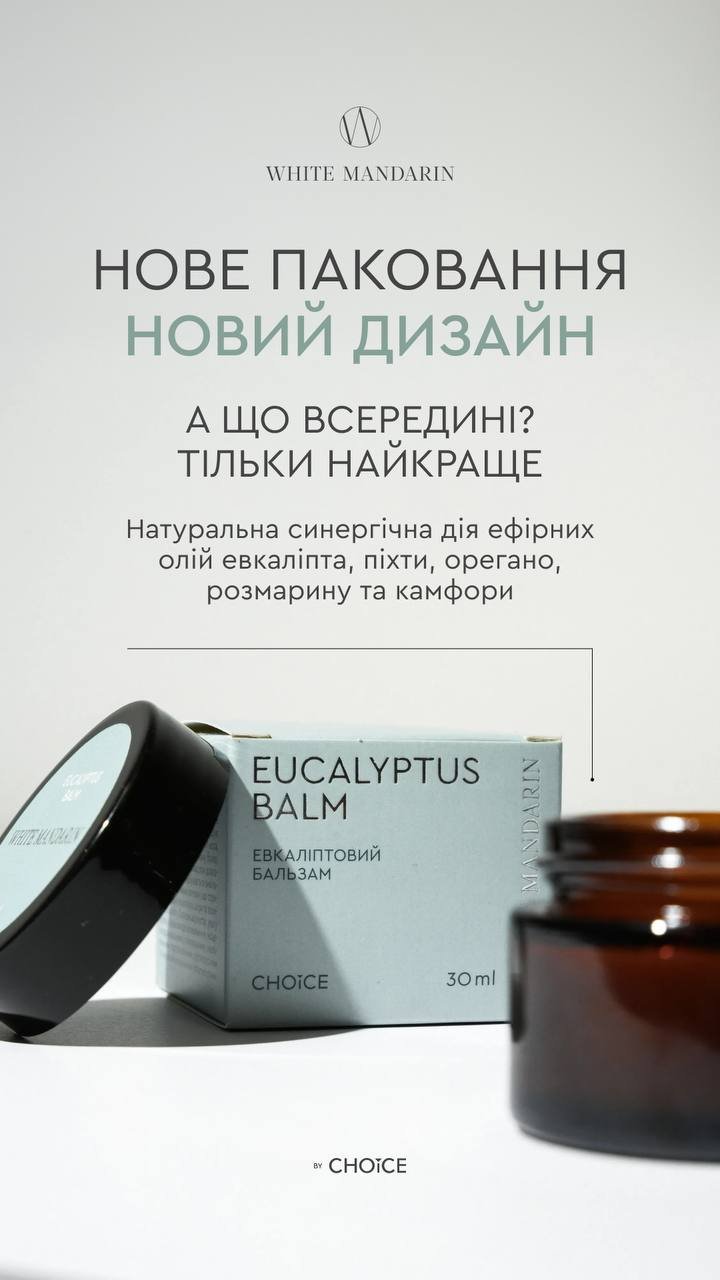 Косметичний засіб Евкаліптовий бальзам на основі ефірних олій евкаліпта, піхти, орегано, розмарину рекомендовано застосовувати з метою полегшення симптомів і в комбінованій терапії при нежиті або закладеності носа, при кашлі та застуді, при головному болю, при болю в м’язах. Завдяки довготривалій дії ефірних олій відбувається вивільнення біологічно активних речовин, що спричиняє стимуляцію рецепторів шкіри та посилення кровообігу. Бальзам володіє зігріваючими, місцево подразнюючими, тонізуючими, відволікаюючими, анальгетичними, протизапальними, противірусними та імуностимулюючими властивостями.