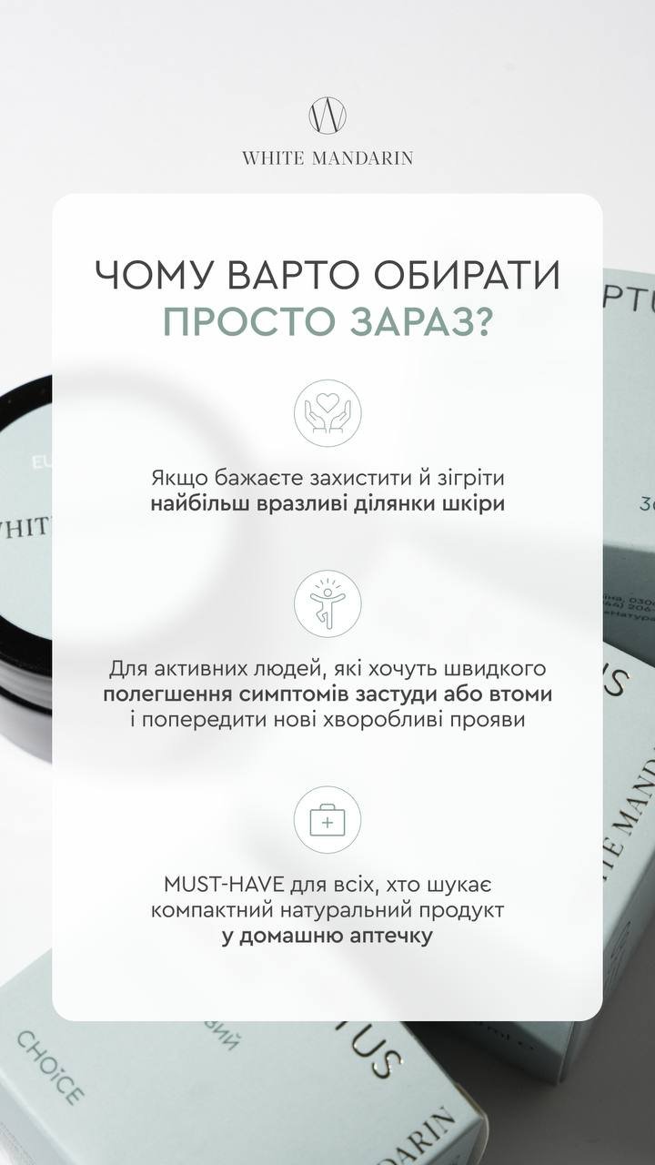 Косметичний засіб сприяє полегшенню симптомів і в комбінованій терапії при нежиті або закладеності носа, при кашлі та застуді, при головному болю, при болю в м’язах.