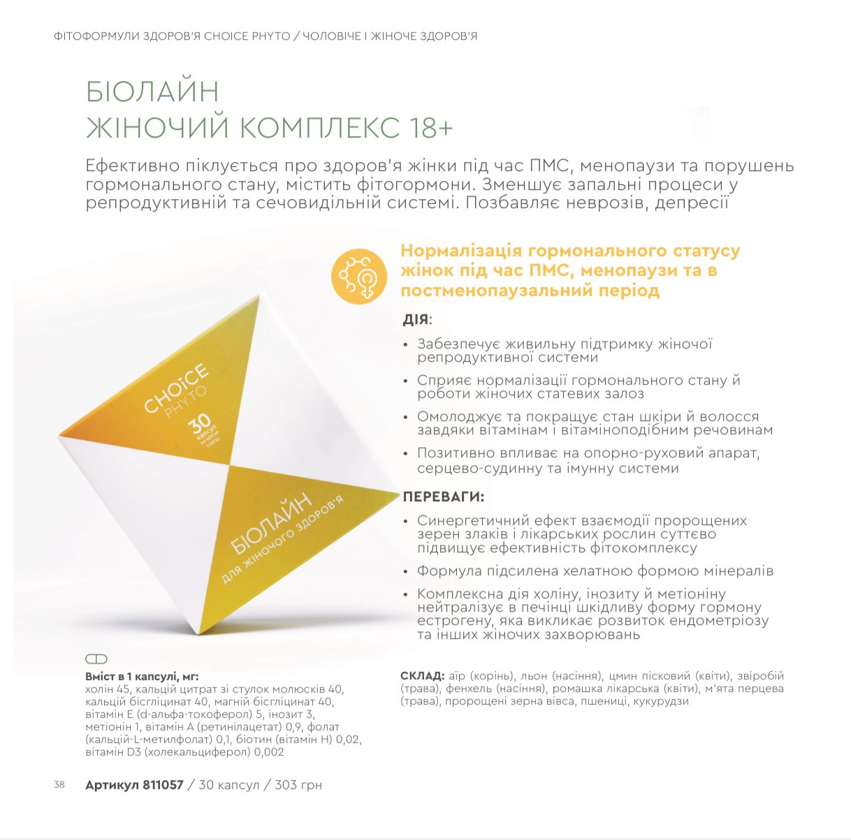 Біолайн — це дієтична добавка на основі натуральних рослинних компонентів, яка допомагає жінкам підтримувати загальний стан здоров’я, включно з шкірою і волоссям. Вміщує вітаміни і мінерали для підтримки нормальної роботи репродуктивної, серцево-судинної та імунної систем.