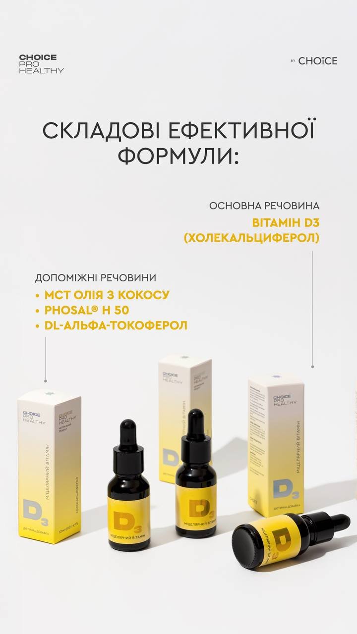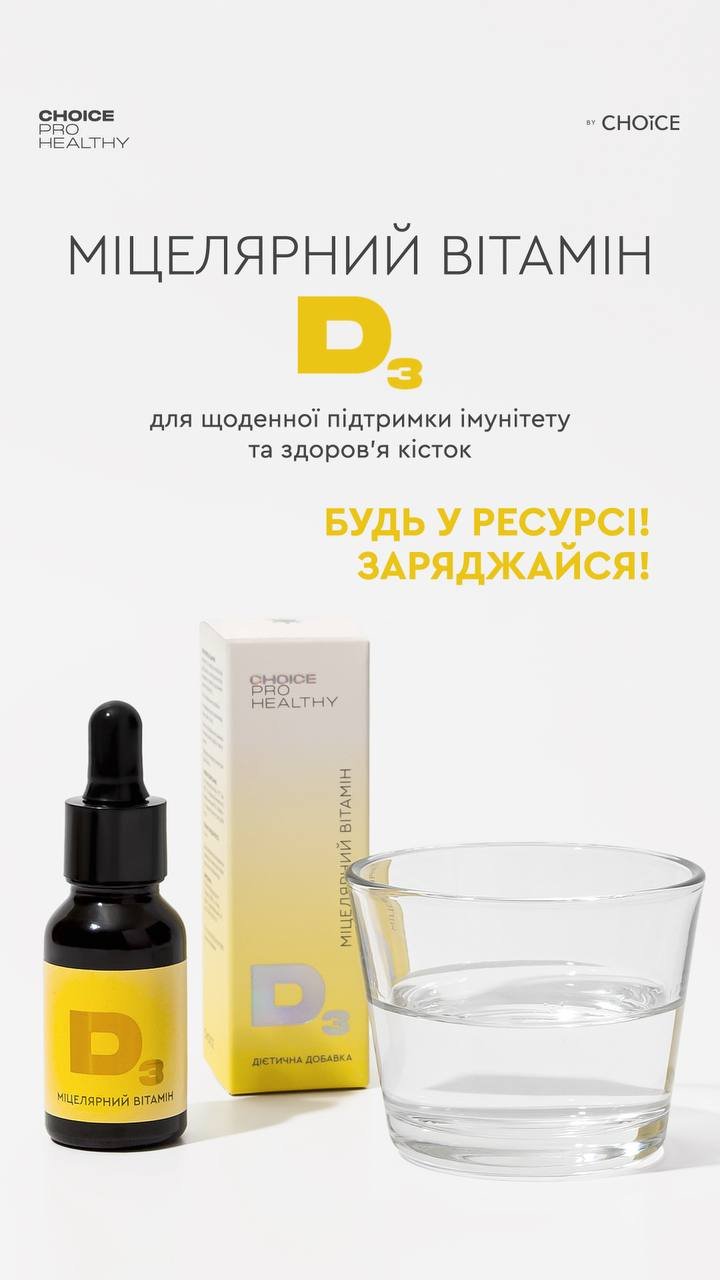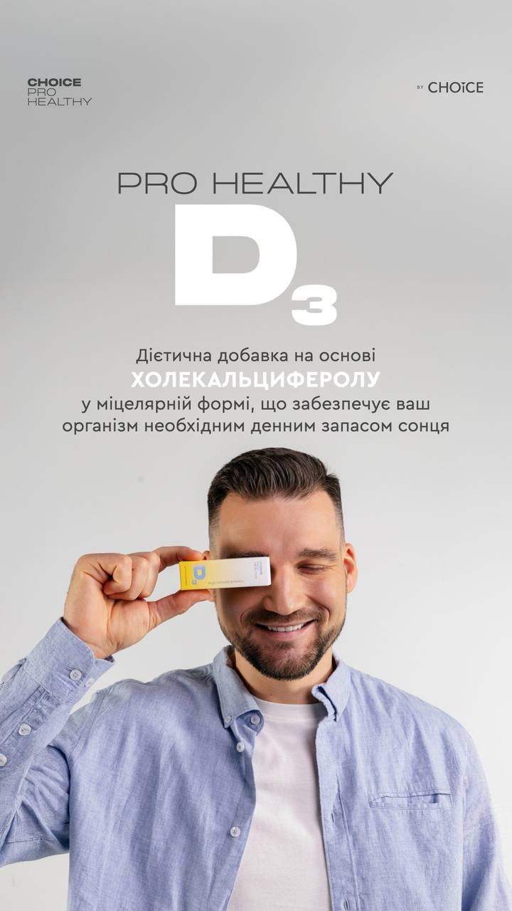 PRO Healthy «D3» — дієтична добавка на основі холекальциферолу у міцелярній формі, розроблена для щоденного застосування в періоди обмеженого сонячного впливу або підвищеної потреби в нутрієнтах.